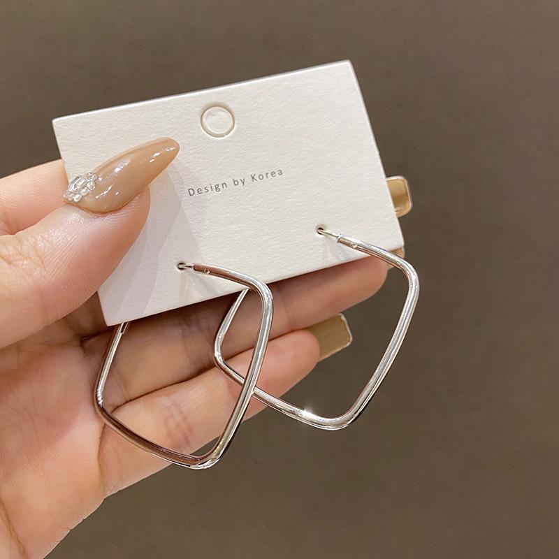South Korea Dongdaemun geometric square earrings simple and cold wind smooth metal stud earrings women's 925 silver needle ears