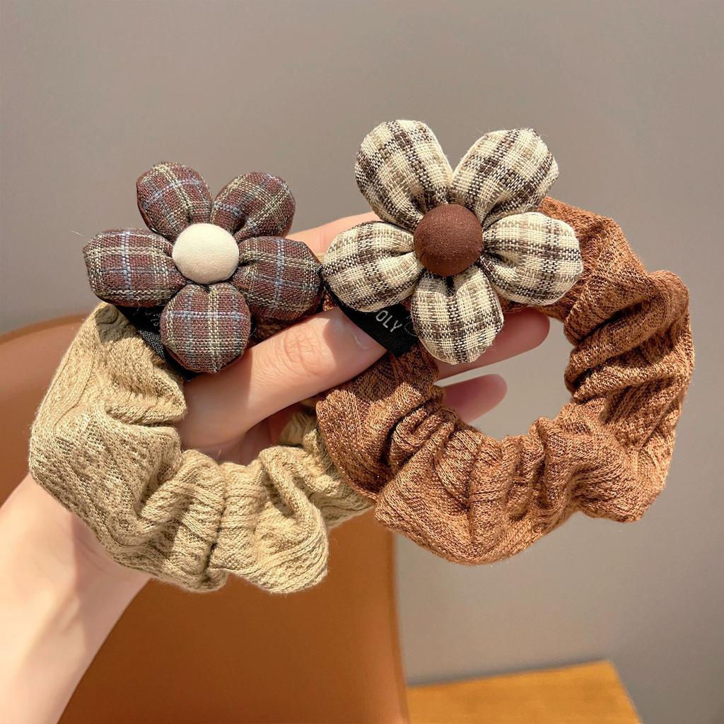Autumn and winter coffee color rubber band flower hair rope headgear retro large intestine ring headrope Maillard hair accessories