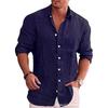 Herren Oversized Hemd mit entspannter Passform, einfarbig, Leinenkragen, Langarm, Freizeithemd