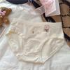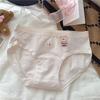 Damen-Slips aus reiner Baumwolle, antibakteriell, mittelhoch geschnitten, mit süßem Kaninchenmuster - Extra langer Schritt, hüftumschließendes Dreiecksdesign