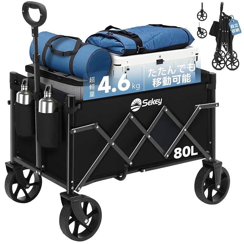 Sekey Mini Carry Wagon [Ultra-Lightweight 4.7kg] Freestanding Storage, Foldable, Portable, Outdoor Wagon, Maneuverable, Removable Tires, 80kg Weight