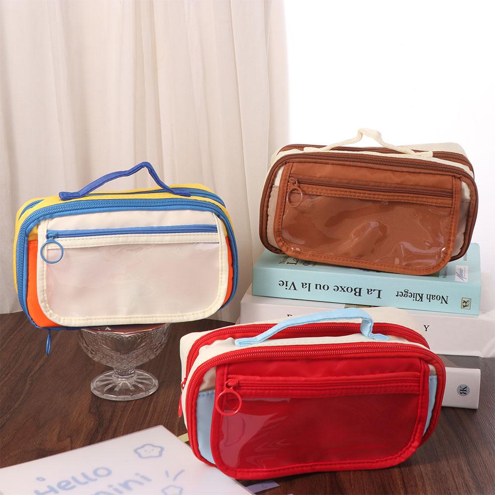 Zipper Pencil Bag Multi Layers Makeup Bag Kawaii Stationery Storage Bag Office Supplies