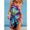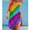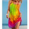 Regenbogen Malerei Druck Damenmode Kleid Midi Sommer Sexy Strandkleid Böhmisch Ärmellos Partykleider Elegant Sommerkleid Saum
