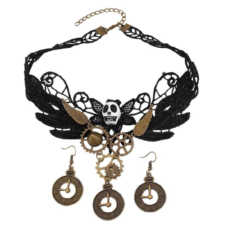 Halloween Kostüm Set Gothic Spitze Choker Halskette Ohrringe für Damen und Teenager.