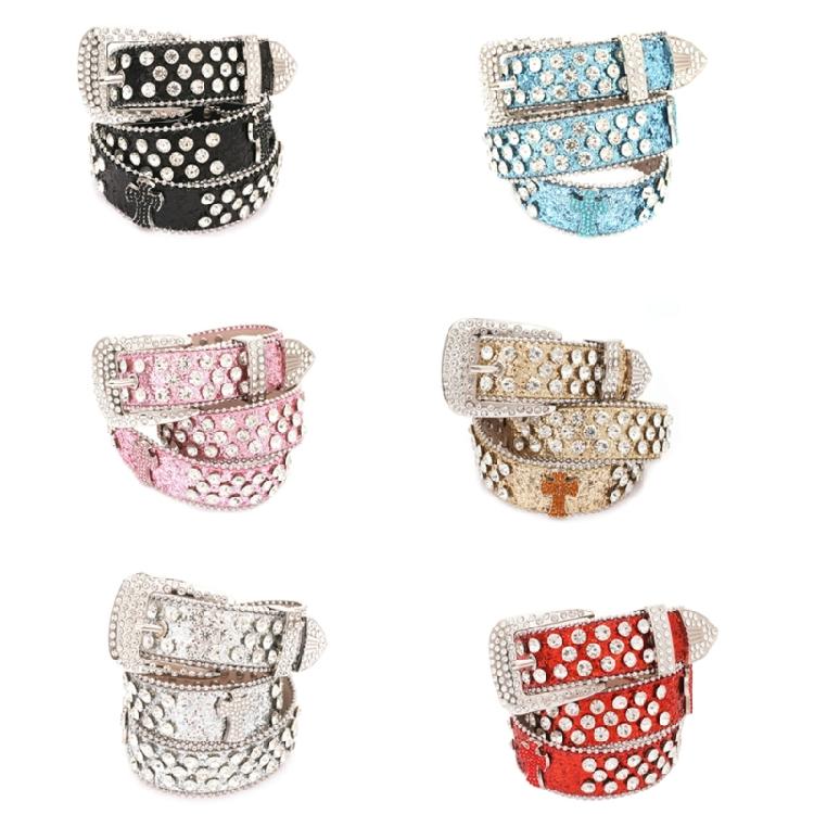 Sequins Waist Belt with Diamond Pin Buckle Adult Personality PU Waist Belts for Adult Costume Pants Adjustable Length