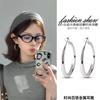 Minimalist Silver Double Layer Large Earrings Women's Summer Versatile Square and Round Face Plain Hoop Earrings