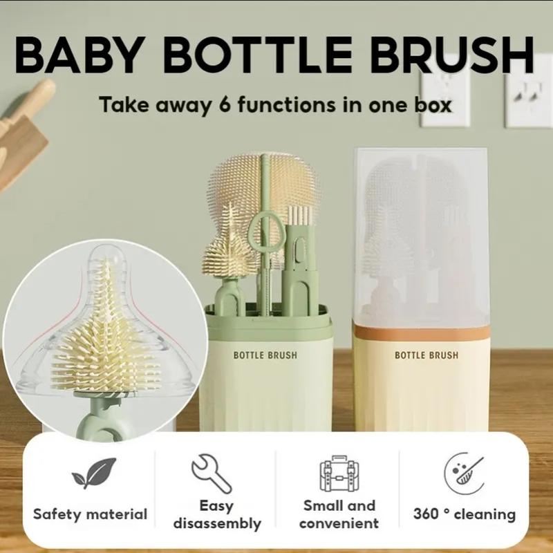 6 In 1 Silicone Bottle Brush Set Travel Drain Rack Cleaning Straw Multifunction Long Handle Baby Feeding Bottle Brush