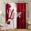 2 Stück - 2D flach bedruckte romantische rot-weiße Musterdruckvorhänge, Fensterdekoration, Heimdekoration, Raumdekoration