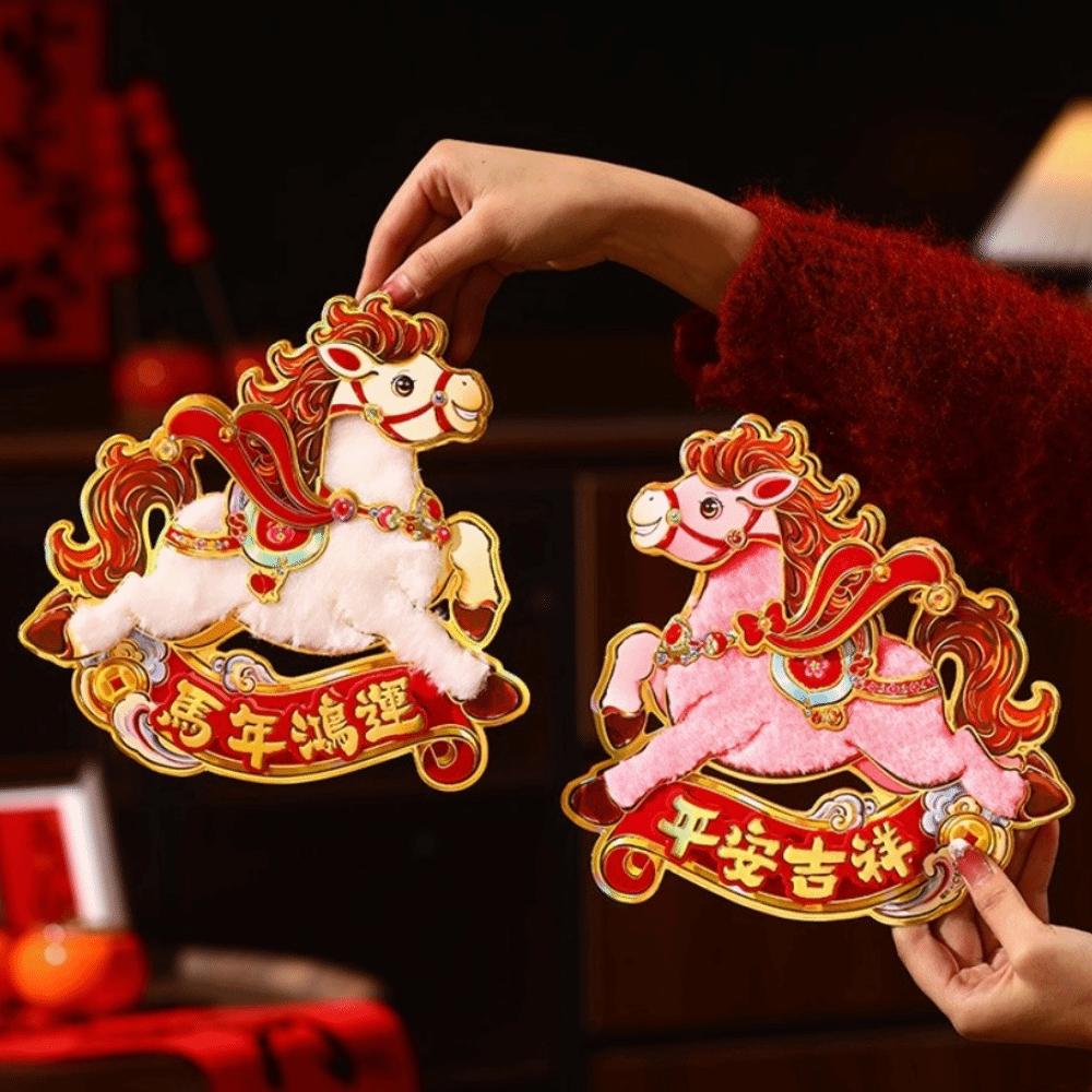Chinese Style 2026 Horse Year Door Sticker Bronzing God of Wealth New Year Wall Sticker Blessing Decorative Fu Character Sticker