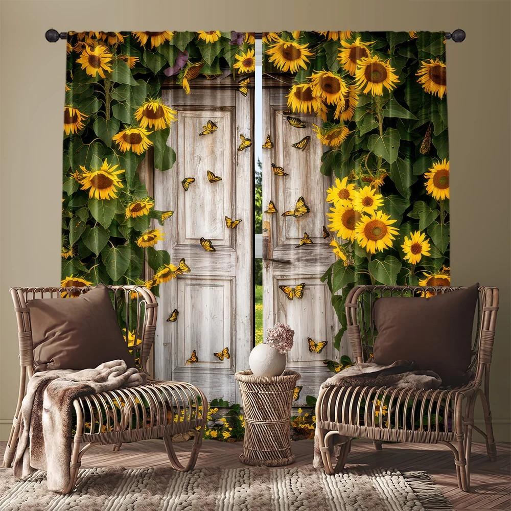 2pcs Vibrant Sunflower Curtains Blackout Window Drapes Rustic Decor Holiday Window Treatment Farmhouse Decor Rod Pocket Cur
