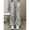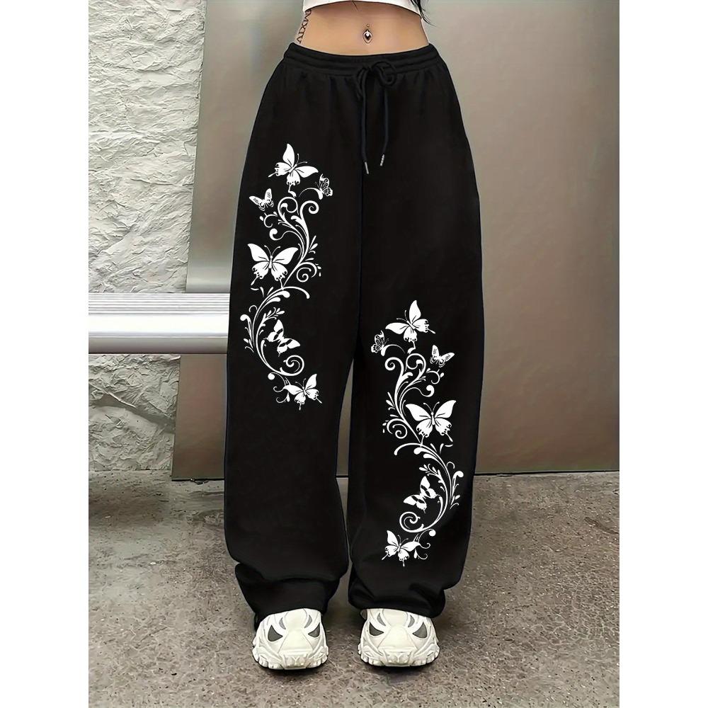 Elegante Damen-Jogginghose mit Schmetterlingsdruck - Hose mit elastischem Bund, weitem Bein und Kordelzug, modische und bequeme Hose