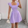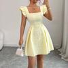 Damen Modisches Farbe Quadratkragen Pullover Frisch Süß Kurzer Rock Mit Taille A-Linien-Kleid