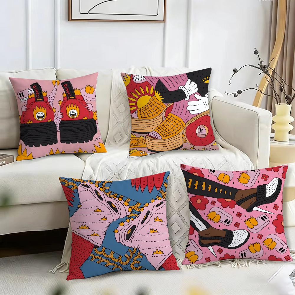 Illustration von allem auf Schuhen Kissenbezug Wendbar Plüsch Kissenbezug – Für Auto, Sofa, Schlafzimmer, perfekt als Geschenk.
