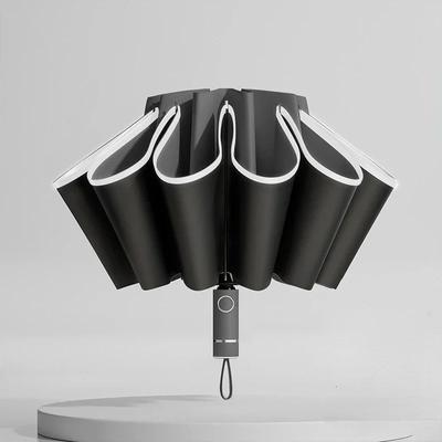 Schwarzer Herren Damen Schirm Vollautomatisch Umgekehrt Faltbarer Schirm mit Winddichtem Reflektierendem Streifen UV Schirme