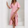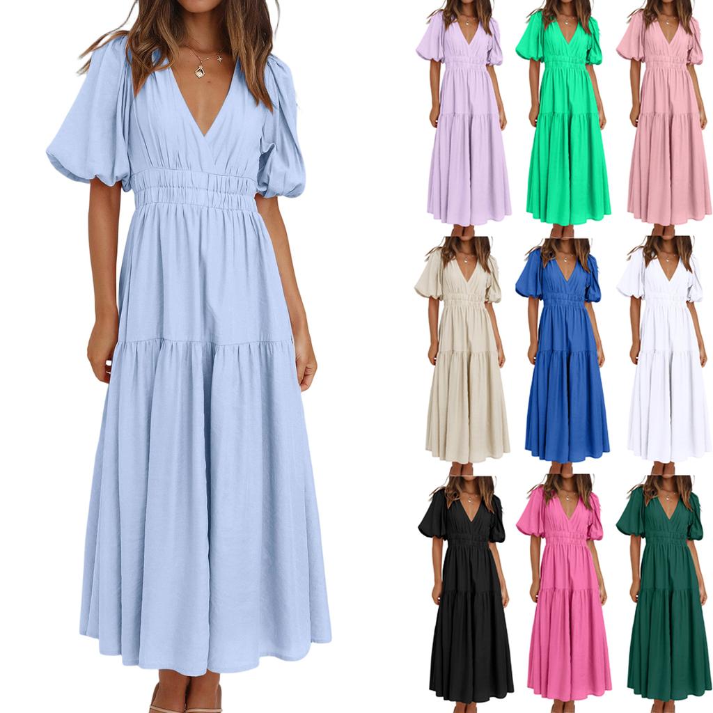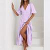 Women's Fashion Color Short Sleeve Cotton Linen Patchwork Pleat Dress