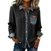 Damen Strick Patchwork Denim Mode Langärmelige Strickjacke Jacke
