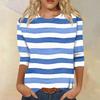Women's Fashionable Casual Round Neck Three,quarter Sleeve Striped Printed T,shirt Top