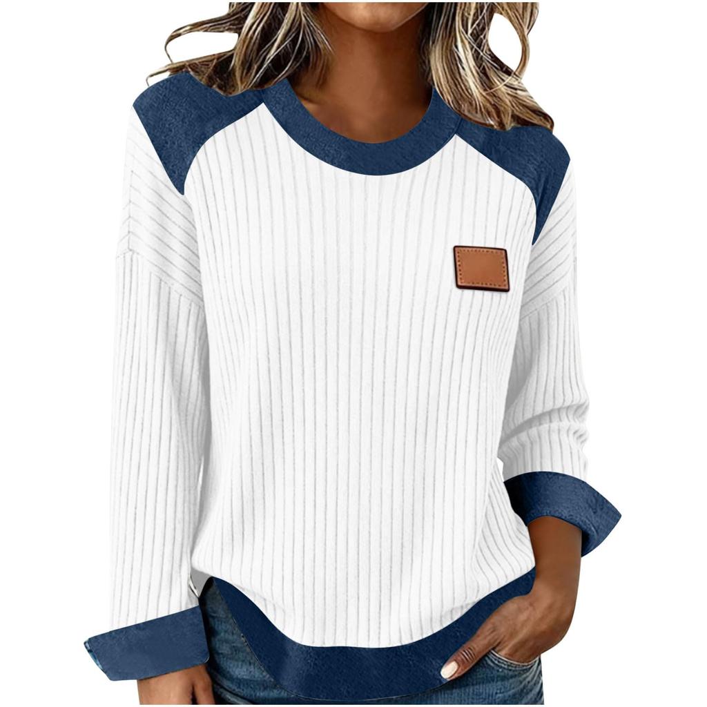 Damen Jeans Patchwork Kragen Kontrast, Farbe Übergröße Lang, Ärmel Strukturstrick Hemd
