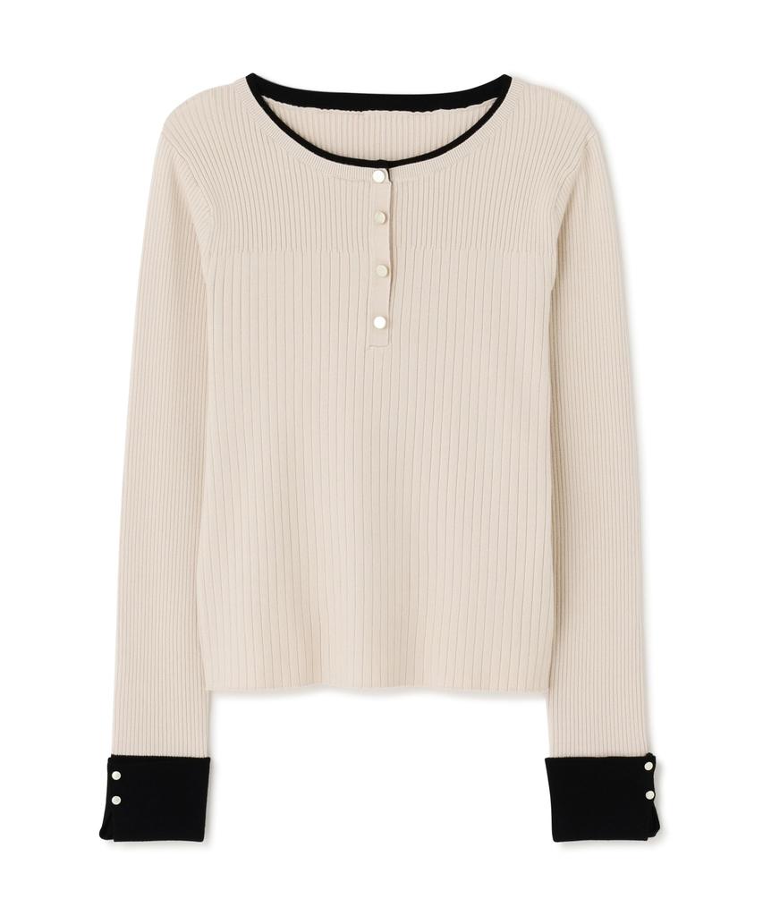 Beauty Front Button Bicolor Knit [Natural Basic] [Beige/Free Size] [Product]