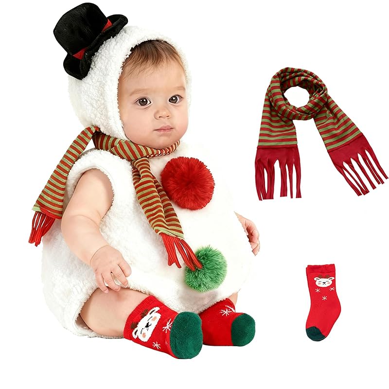 Stabbon Baby Snowman Costume, Hooded Romper for Boys, Perfect for Winter, Open-Front Jumpsuit, Cute and Soft Coverall, Perfect for New Year's