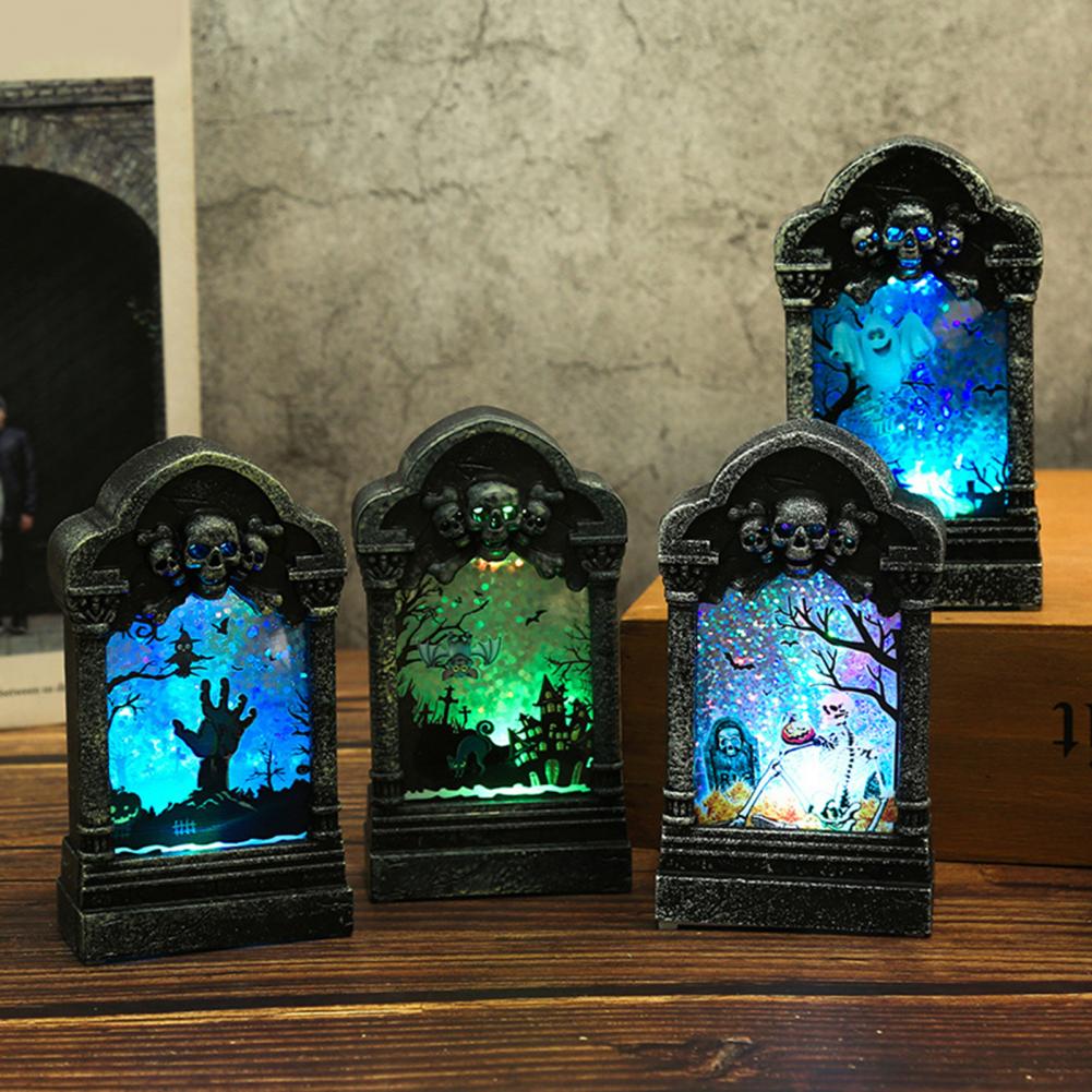 Halloween Graveyard Ornaments LED Halloween Headstone Lamp Energy Saving Practical Skull Halloween Graveyard Ornaments