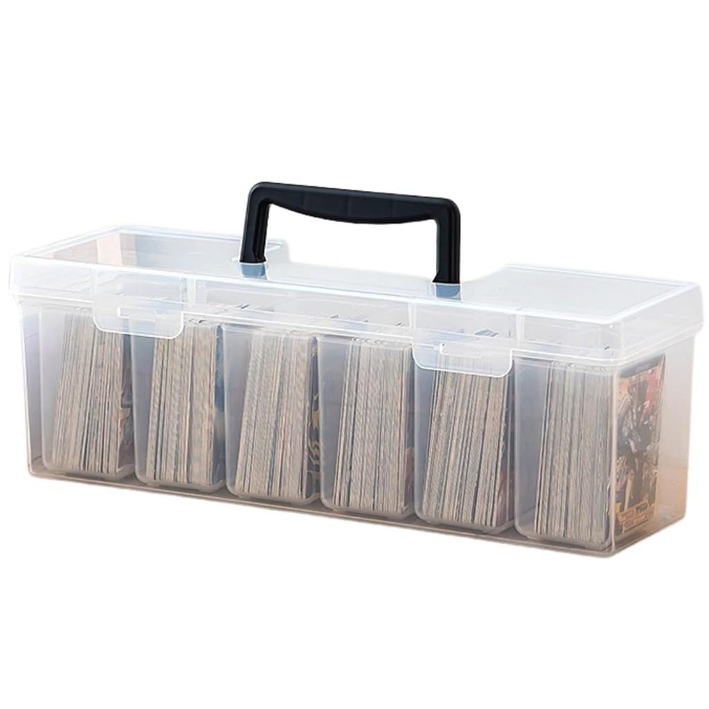 [Card Box for Secure Organization] Organize your cards by type in six separate cups. The cups are removable, allowing for custom organization. [Safe with Lid] The lid keeps your cards safe from dust and dust. Even if the case is dropped, your cards won't get scattered, so you can rest assured in the unlikely event of an accident. [Stackable Storage for Neat Organization] Stackable storage allows for efficient use of space. By separating cards into separate cases, you can quickly find the card you need. [Convenient Handle] The durable, easy-to-use handle makes it easy to carry. Comfortable for outdoor transportation and easy portability. [Size & Specifications] Overall Height: 12cm, Weight: 314g, Lid: 35.8cm x 10.8cm, Storage Area: 34.5cm x 9.4cm, Cup Size: 9cm x 9.2cm, Depth: 5.7cm, Weight: 36g