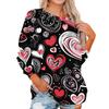 Damen Modisches Rundhals Schulter Langarm Valentinstag Bedrucktes Lässiges Pullover-Oberteil