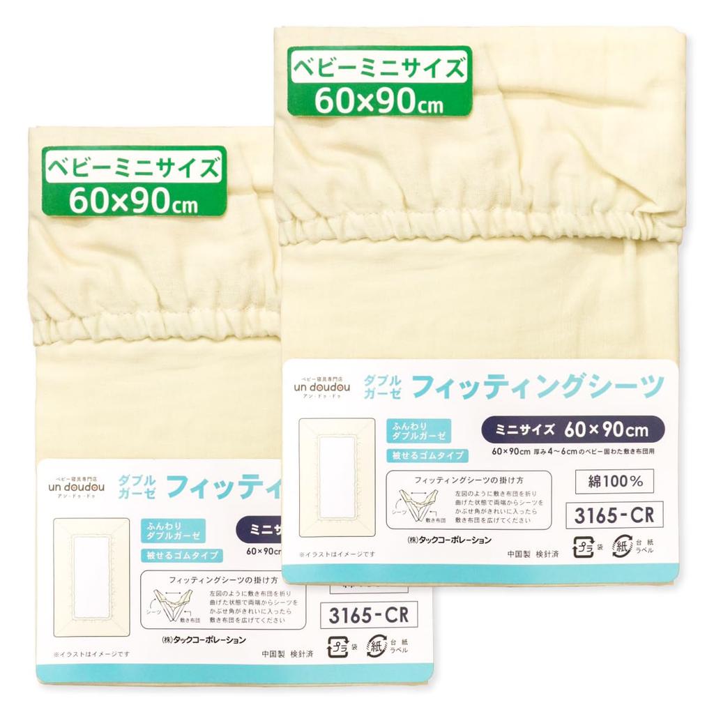 Un doudou Baby Mini Spannbettlaken, 2er-Set, 60x90cm, Double Gauze, Creme, 100% Baumwolle, 3165-CR(2)