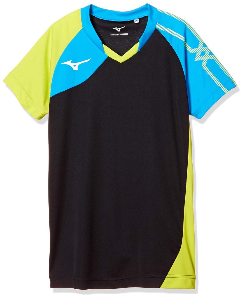 Mizuno Volleyball Game Shirt (Short Sleeve), V2MA9001, Black x Diva Blue x Lime Green, Size M (Japan Size)