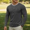Men's Casual And Trendy Long,sleeved Shirt With A Base Layer And Horizontal Striped Round,neck Top