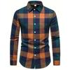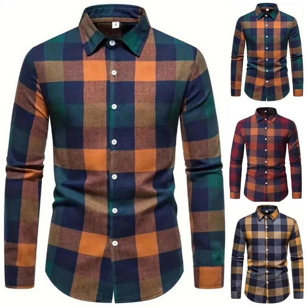 Men's Casual And Trendy Digital Printed Checkered Long,sleeved Lapel Button,down Shirt