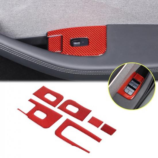 Red Carbon fiber Window Lift Switch Button Trim Sticker For Tesla Model 3 23-24