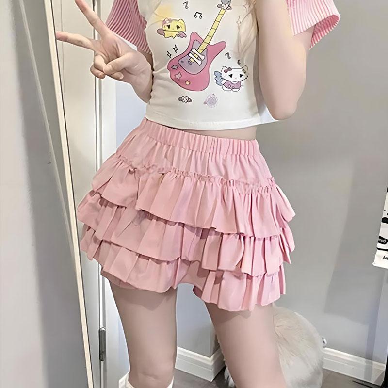 Ruffles Mini Skirt for Women Kawaii Lolita A Line Skirts Shorts Y2K Sweet Style Clothing Harajuku