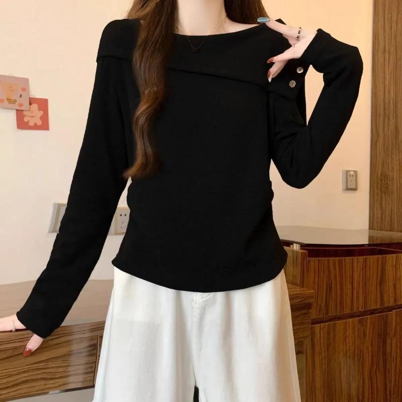 Herbst Neu Beliebtes Ein-Schulter-T-Shirt Damen Langarm-Top Unterhemd T-Shirts