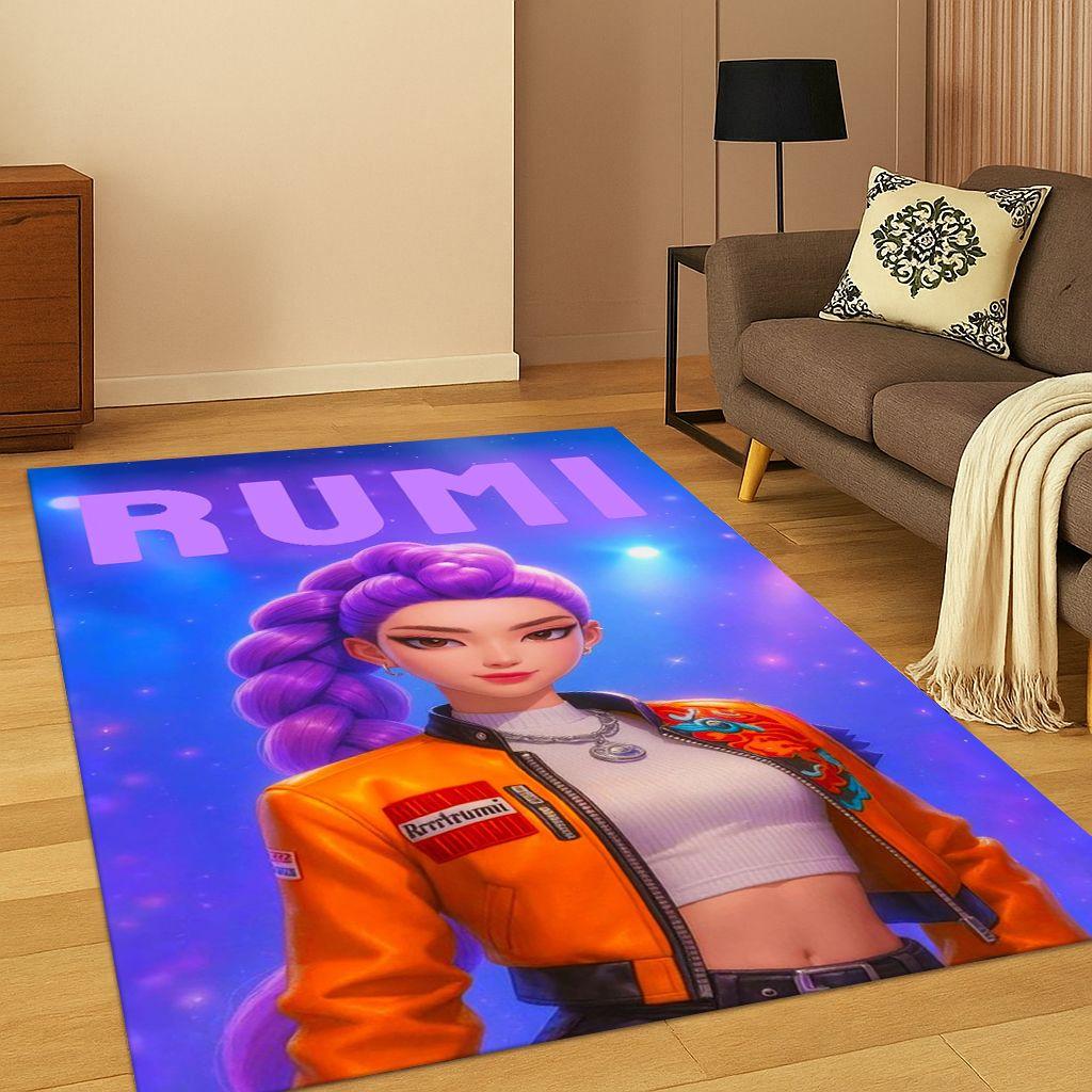 3D Dämonenjäger Kpop Rumi Mira Zoey Musik Teppich für Schlafzimmer Wohnzimmer Sofa Heimdekoration, Teppich Rutschfeste Fußmatte Geschenk