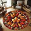 [2D flat, not 3D]Comes with 2 anti slip mats1pcs Autumn Leaves Squirrel Pattern Round Mat- Soft, Non-Slip Polyester Floor Mat wi