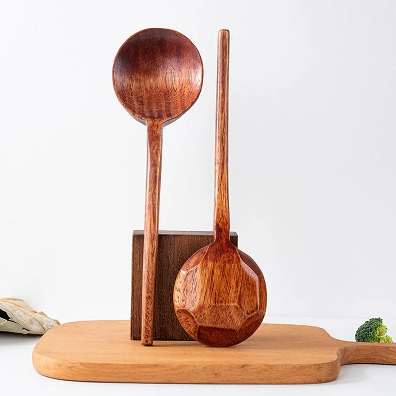Long Handle Wooden Spoon Ramen Soup Spoon Ladle Kitchen Cooking Spoon Big Wood Serving Tablespoon Japanese Restaurant Tableware