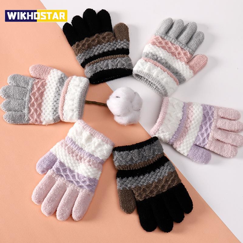 Herbst- und Winter Kinder Warme Handschuhe 3-8 Jahre Jungen und Mädchen Verdickte Gestreifte Gestrickte Vollfingerhandschuhe