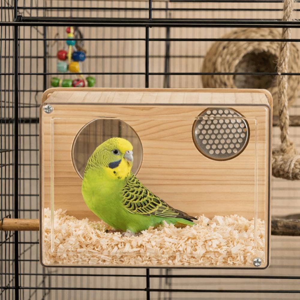 Atmungsaktive Wellensittich-Nistkasten Sichtbarer Vogelkäfig Haus Holznest Vogel Brutzeit