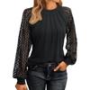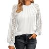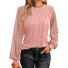 Damen Modisches Langarmshirt mit Spitze und Rüschen, T-Shirt, einfarbig, Rundhalsausschnitt, lässiges Oberteil