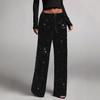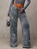 Glänzender Faltschnur für schmal geschnittene Hosen, Damen-Freizeithosen