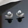 Huitan Feather Design White/Black Simulated Pearl Stud Earrings for Women Aesthetic Bride Wedding Earrings Luxury Trendy