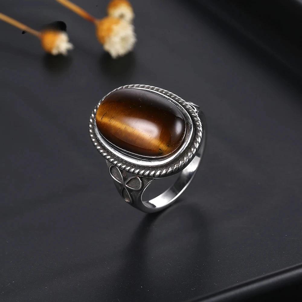 Oval Große Natürliche Tigerauge Ringe S Silber für Damen Vintage Verlobung Hochzeit Jahrestag Geschenk