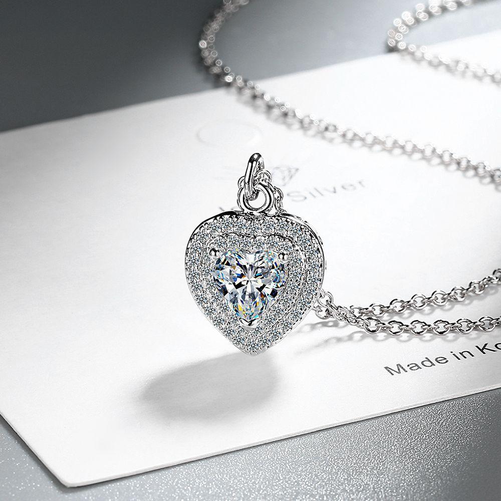 Luxus Damen Collares Sterling Silber Herzförmig Voll Zirkon Anhänger Halskette für Frauen Hochzeit Schlüsselbein Kette