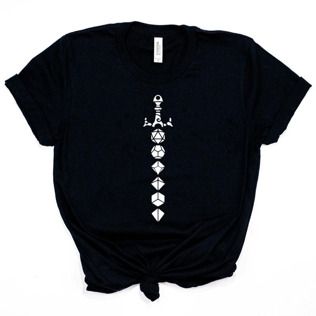 2025 DnD Schwert Shirt Lustiges DnD Würfelset T-Shirt RPG Gaming Shirts Unisex D&D DM Gamer Tee Vintage Ästhetik T-Shirt Geschenk für Fans