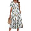 Damenkleid mit Blumenmuster, lässig und modisch, kurzärmelig, Rundhalsausschnitt