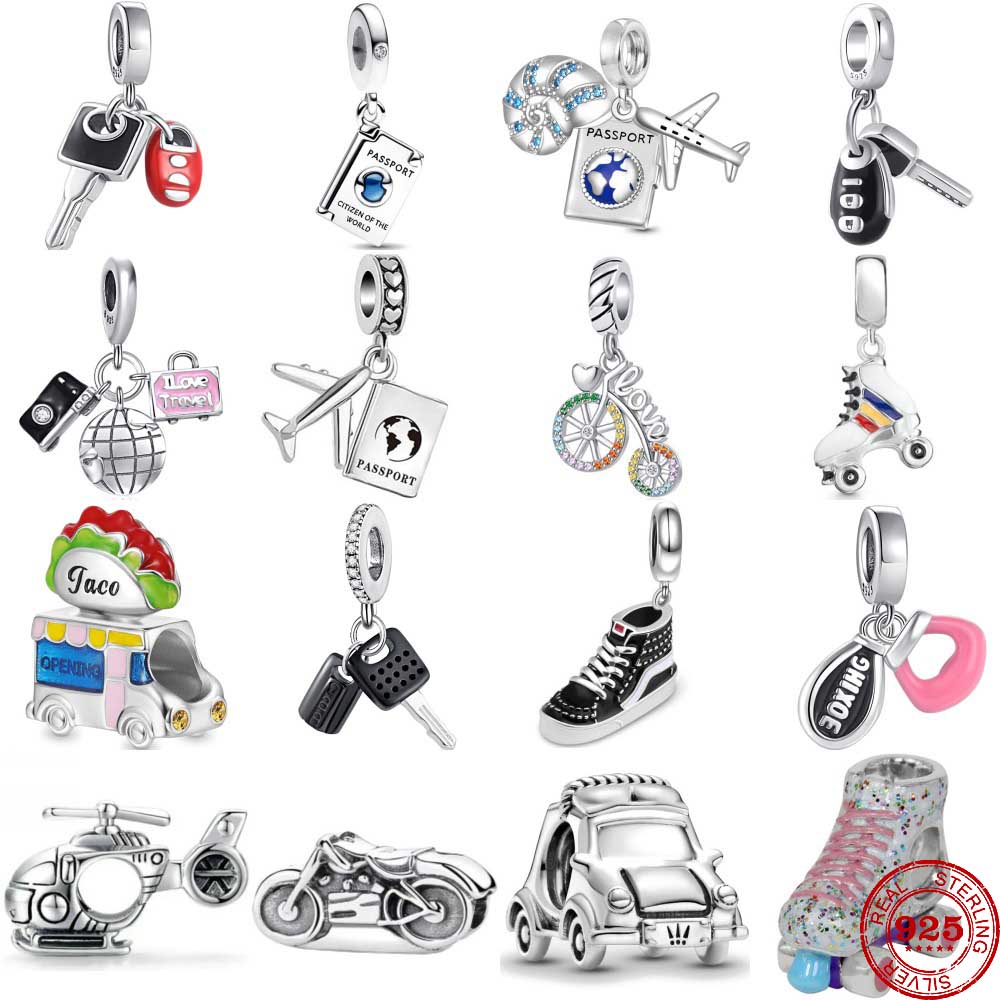 925 Silver Travel Aircraft Motorcycle Pendant Charm DIY Beads Fit Bracelet Necklace Women Jewelry Handmade