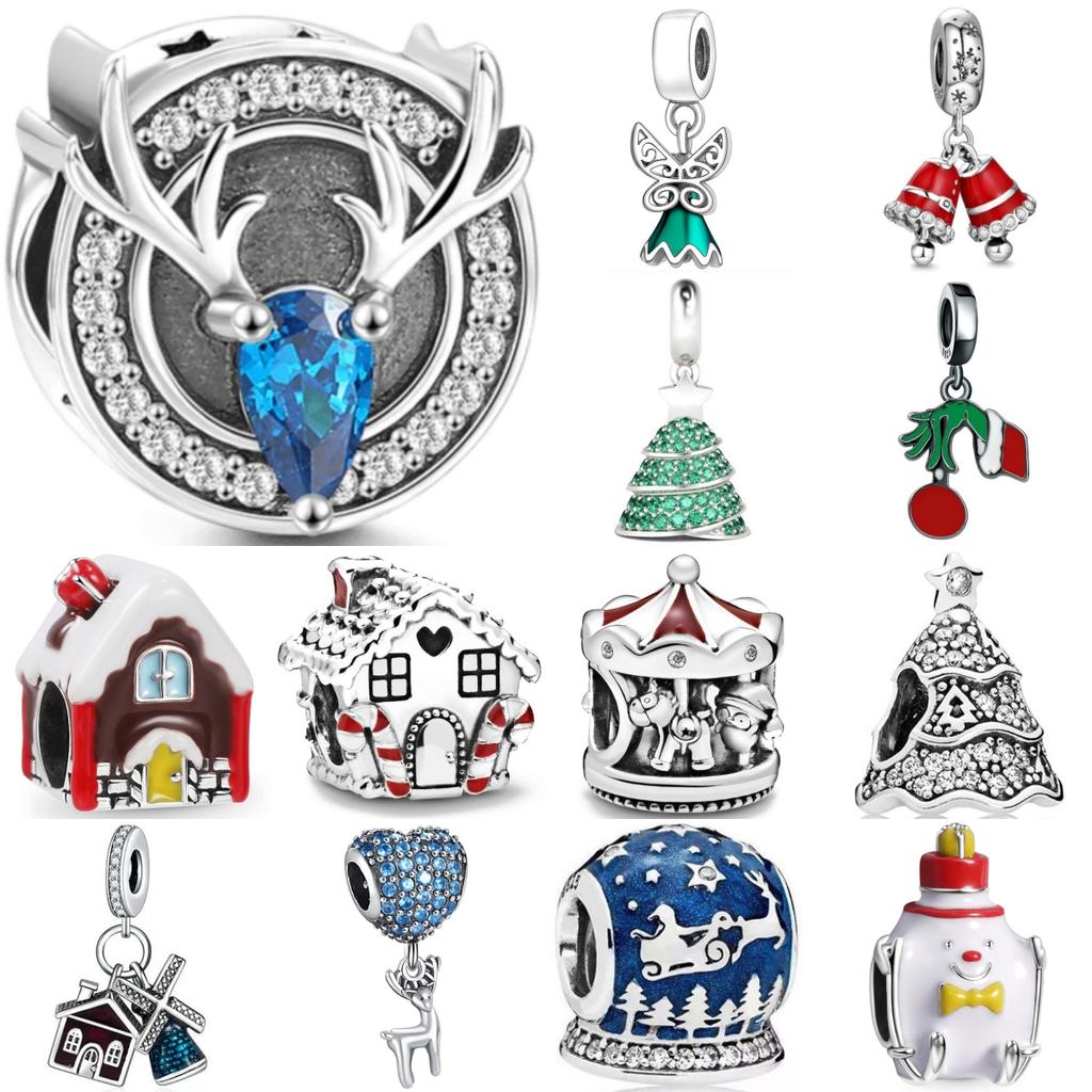 New 925 Silver Christmas Bell Elk Charm Bead DIY Bracelet Jewelry for Women