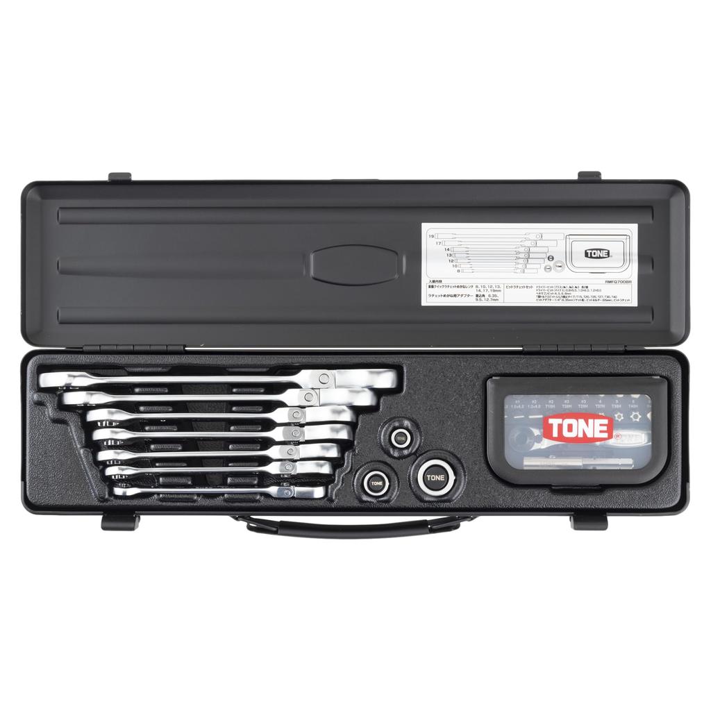 TONE Schnellratsche Schraubenschlüssel Set und mit und Bit-Set Schwenkhals (RMFQ700BRBK), 6,35 mm, 9,5 mm, 12,7 mm Antrieb, 1/4", 3/8", 1/2" Einsätze, Schwarz, 32-teilig