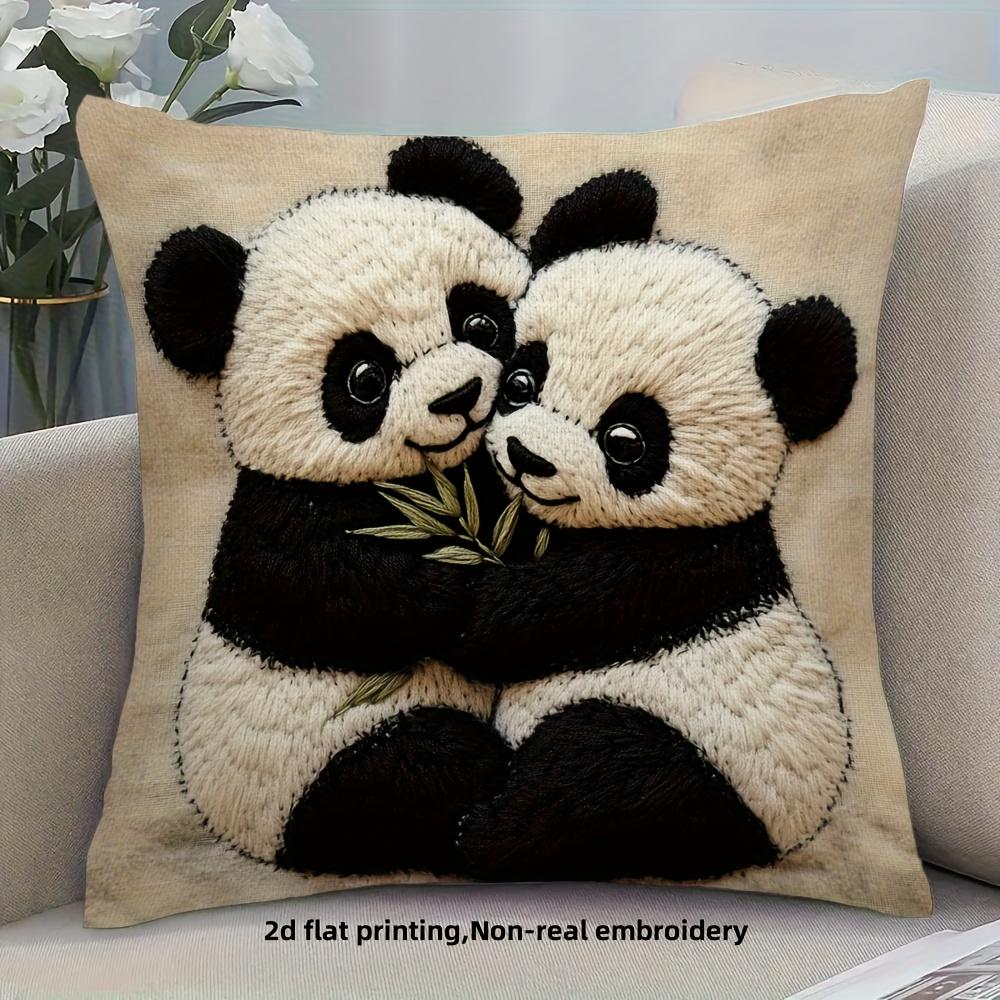 1 Stück, 2D-Flachdruck süßes Panda-Umarmungs-Design Kissenbezug - weicher, bequemer und glatter Polyesterfaserstoff